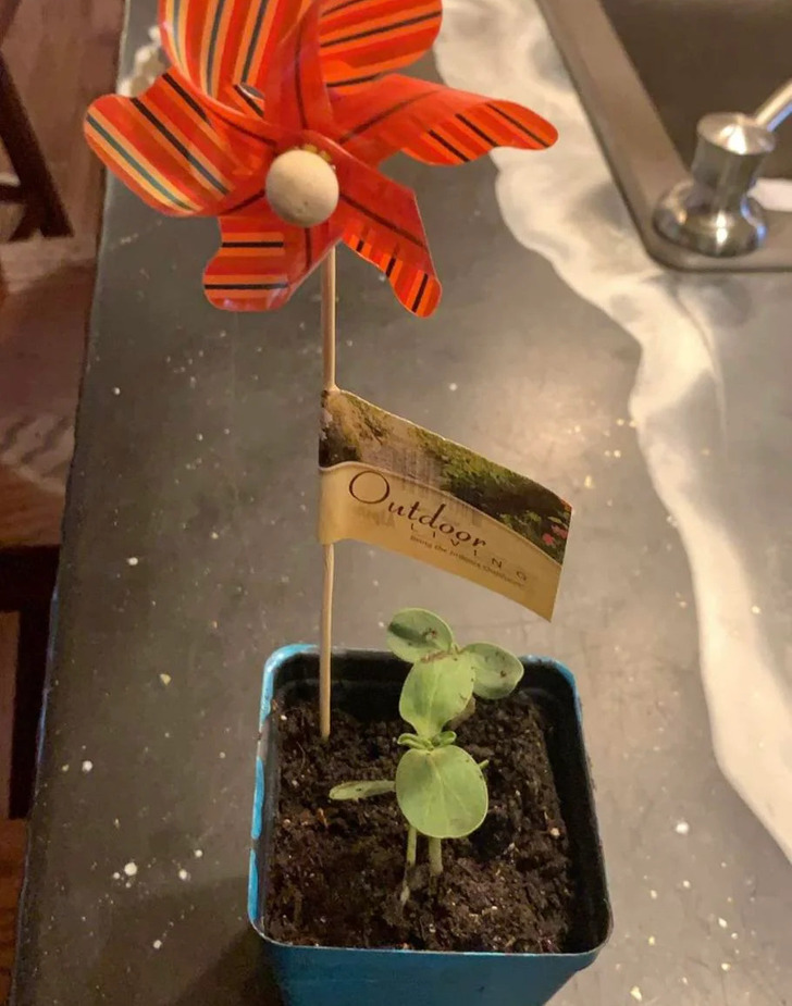 “A ten-year-old girl who lives three doors down dropped this off at our front door. We found out from her mom that she had planted sunflower seeds and wanted to share her little plants.”
