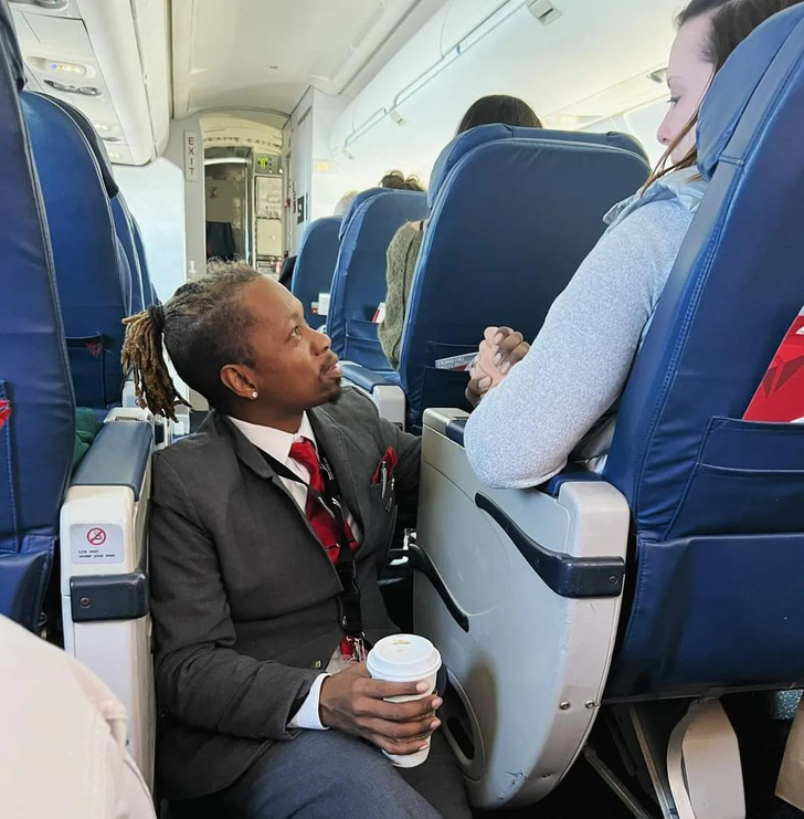 “This woman was extremely nervous about flying. The flight attendant explained every sound and bump, and even sat with her and held her hand when it became too much.”