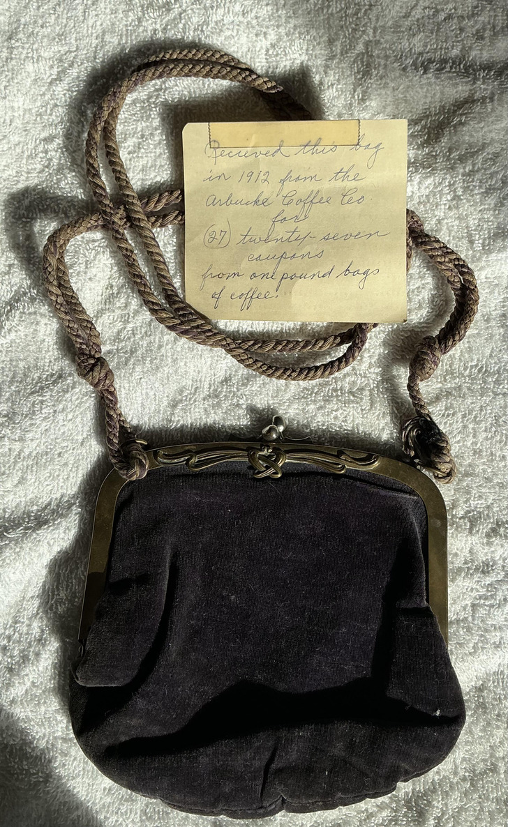 My grandma’s cheap bag she got for coffee coupons. Grandma was 12 at the time.