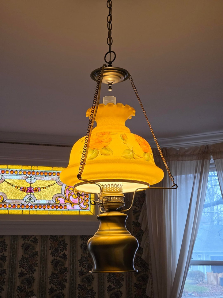 The lamp in our newly acquired late 19th-century home. At first, I thought about replacing them, but over time I realized they have their own unique charm.