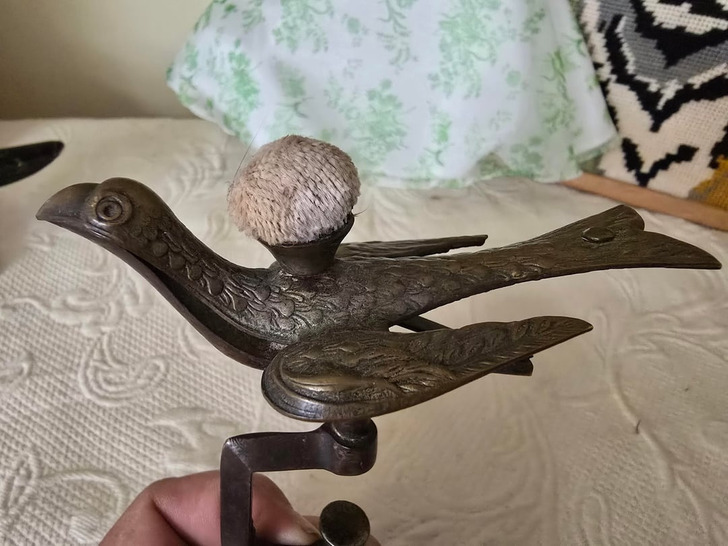 Sewing birds are little clamps with a spring loaded bird and usually a pin cushion to act as a third hand while sewing.
