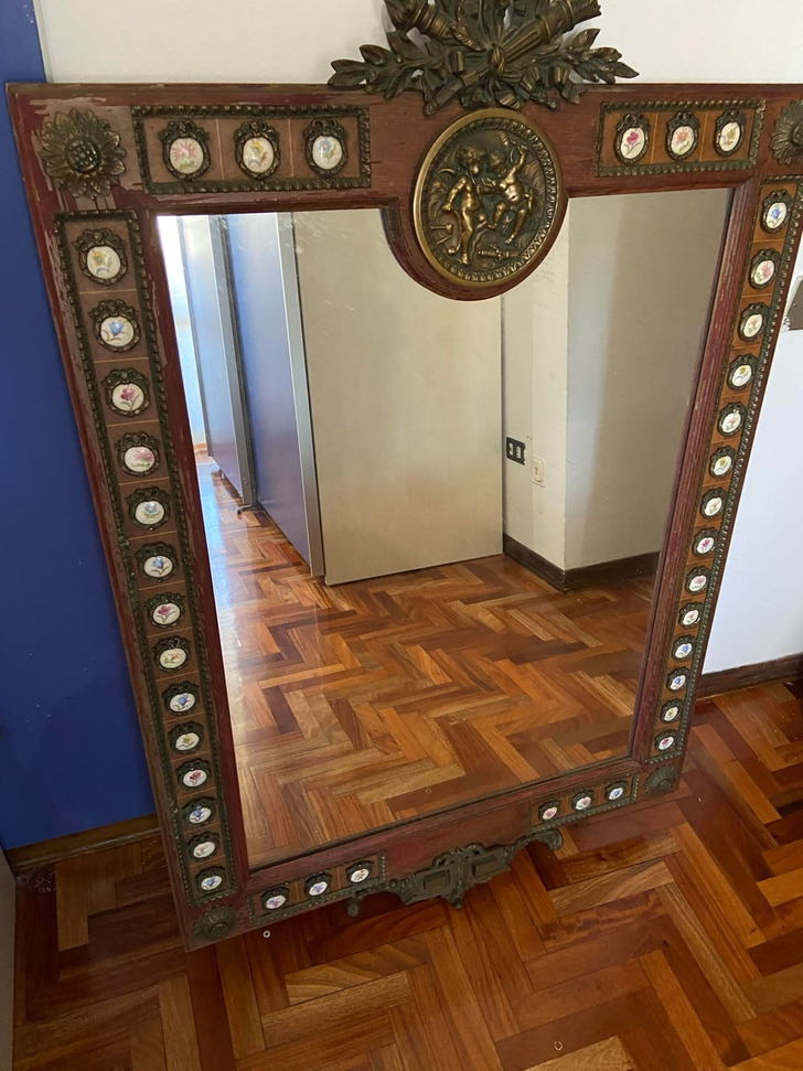 We found an old mirror in my father-in-law basement. It should be from Southern Italy and beginning of 20th century as far as we know.