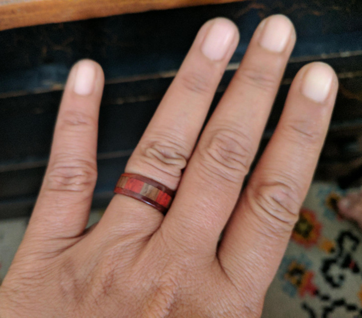 I proposed with a diamond ring, but my wife never wore it. So now, 5 years later, I made her another one. She never takes off this one.