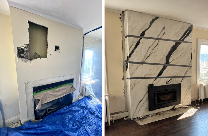 “I paid someone $5,000 to redesign my fireplace, only for them to break the large tile, so my husband and I rolled up our sleeves and did it ourselves. ”