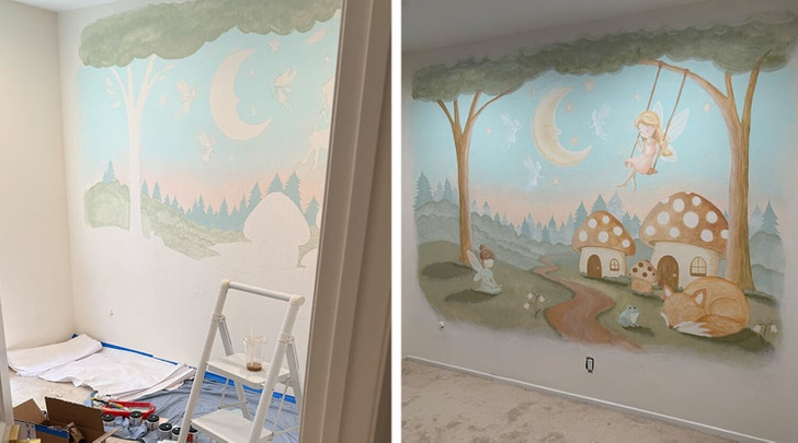 “I am not an artist, but I painted a dreamy storybook mural for my baby niece’s nursery.”