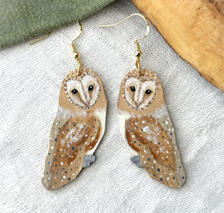Check out my wooden barn owl earrings.