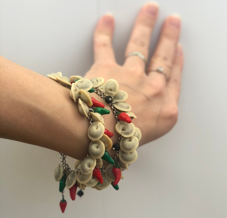 Check out my dumpling bracelets.