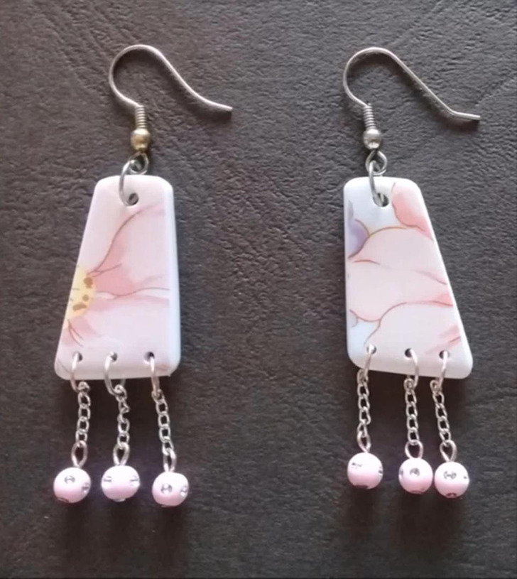 I broke a plate. I decided not to throw it away, but to make these earrings from the shards. Worked on it for about 3-4 hours.