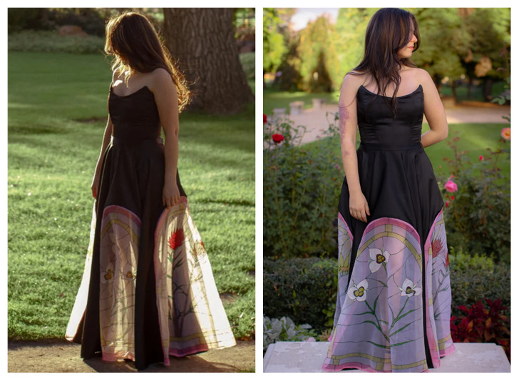 - I audibly gasped at the beauty of your dress. The way the sun catches the panels & looks like it’s illuminating them from inside is incredible! Such talent & creativity. © rikinaynay / Reddit