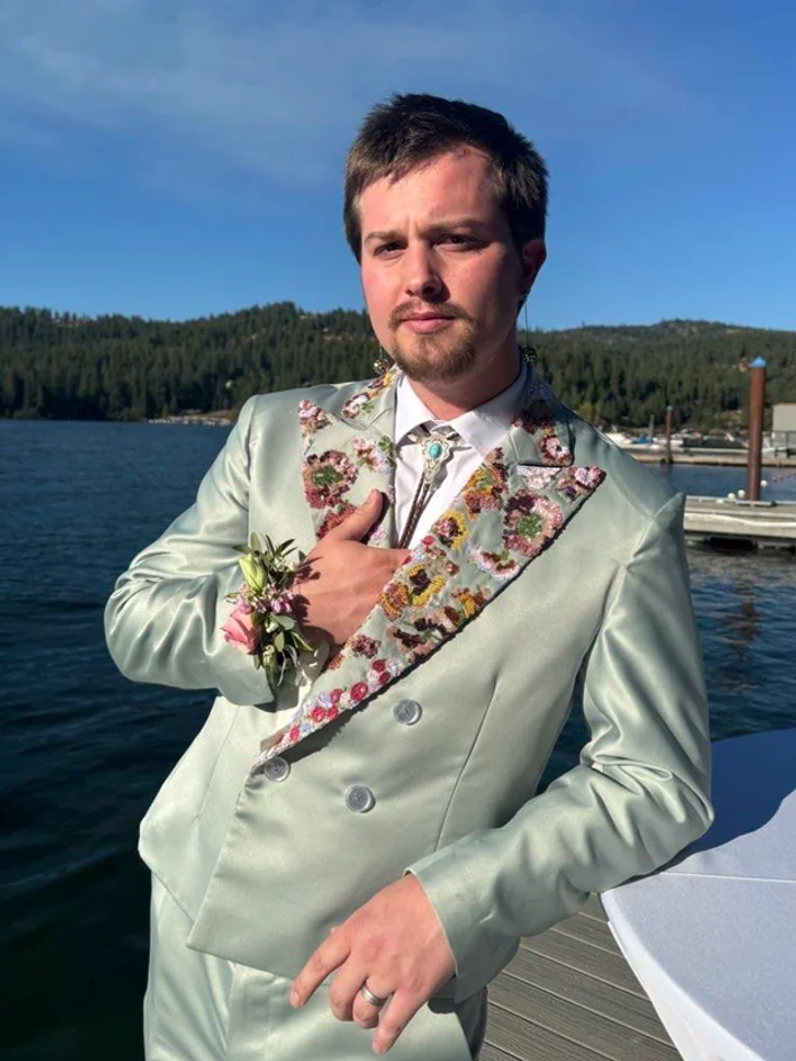 My husband was a bridesman in his friend’s wedding so I made him a suit to match the wedding colors!