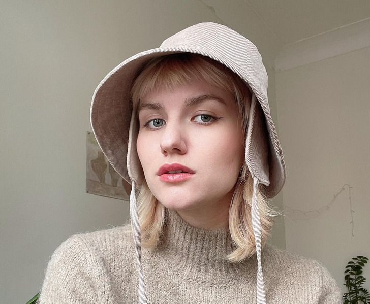 I made this winter corduroy bucket hat in my favorite beige color. It has a fleece lining and tie-up ear flaps.