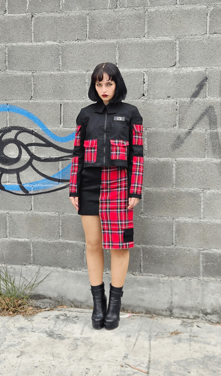 I found a men’s suit in a thrift store and thought I could transform it into a women’s suit with a skirt. Here’s the stylish ensemble I created.