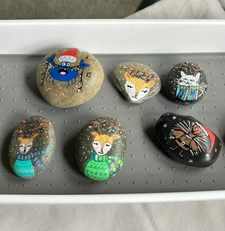 My mom makes “kindness rocks” and hides them around her town. Here are her latest creations.