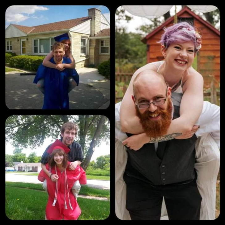My best friend and I in 2012 at my graduation, 2013 at her graduation, and 2021 when I officiated her wedding.