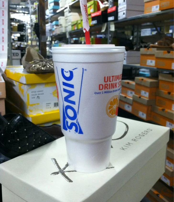“I have a job where I run up and down stairs and walk on concrete all day, but I’m not allowed to wear tennis shoes. I was telling a customer that I had been at work since noon, and I couldn’t wait to leave at 10 p.m. to go to Sonic and get a drink. Look what she brought me!”