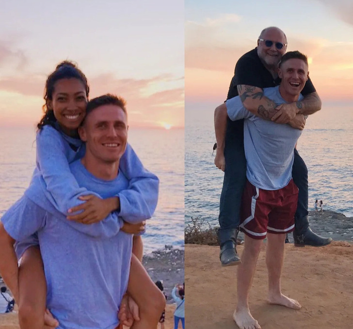 “My girlfriend wanted to take a piggyback picture on the beach, and a random biker who was watching the sunset said he wanted to be in it, too.”