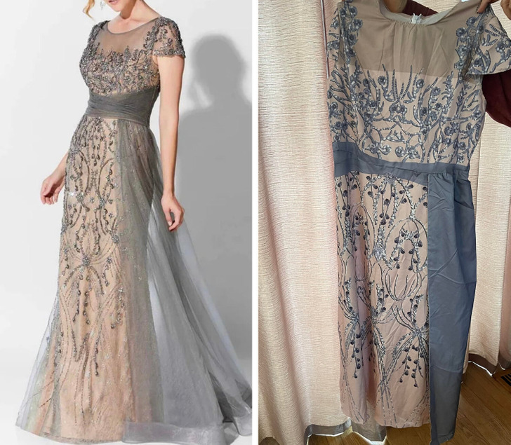 - I really thought the second one wasn’t that bad for a random website. Then I zoomed and realized it was all printed cotton with no actual chiffon or beading. © sjs1244 / Reddit