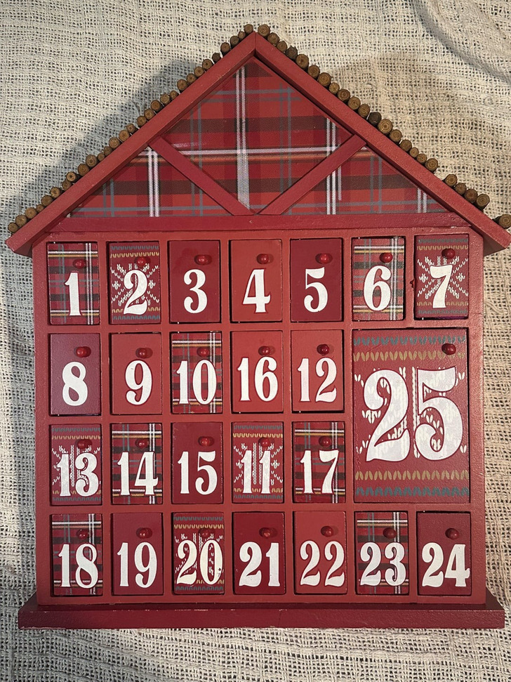 My kids’ advent calendar. Unfortunately, the numbers are painted on, and the doors are not removable.