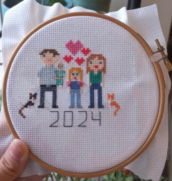 Every year I embroider my family. This year there are new characters.