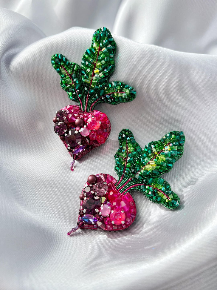 Bead embroidery purple beetroot brooch