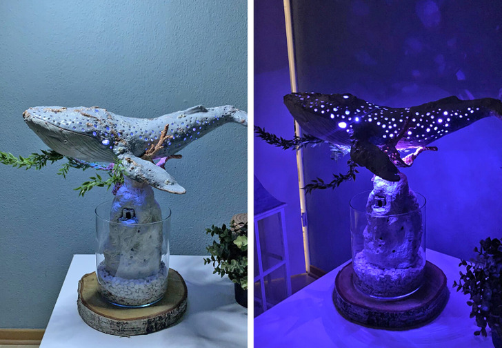 I finally finished my glowing whale lamp!