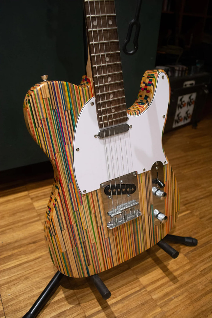 I made a guitar out of used skateboards.