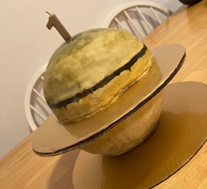 My sweet wife baked me a Saturn-shaped cake for my 29th birthday, as one Saturnian year is roughly equal to 29 Earth years.