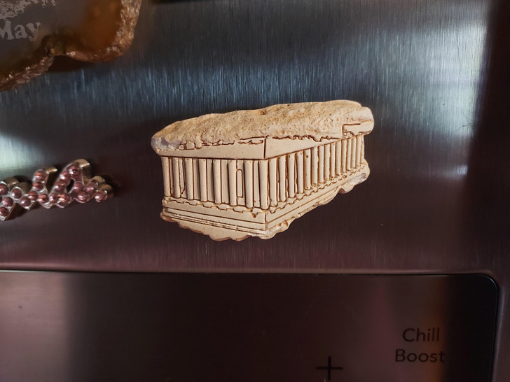 Mom insists this is exactly how the Parthenon magnet should be hung. And she turns it back if we dare to touch it.
