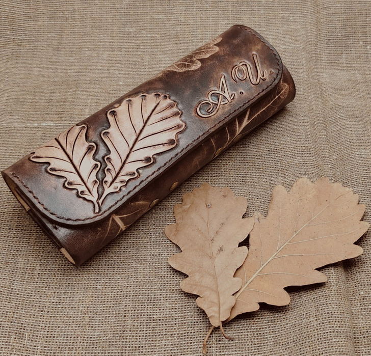 Eyeglass case, made from genuine Italian leather. Hand-dyed with Japanese paints.