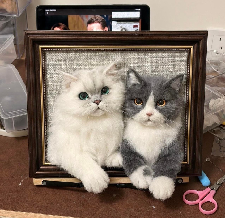 Share needle felted cat portrait with a little 3D twist.