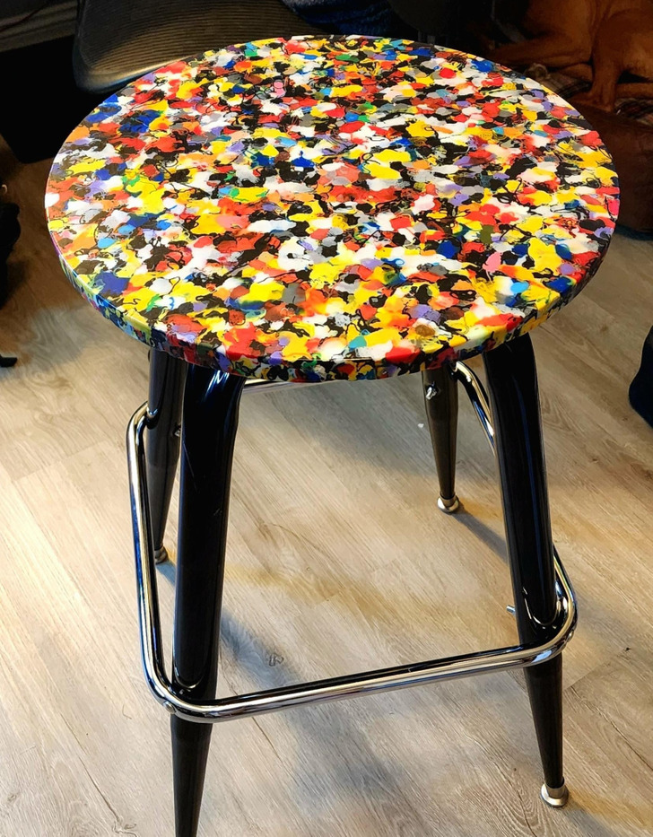 A year’s worth of 3D printer waste and a baking mold from a thrift store helped me make this stool.