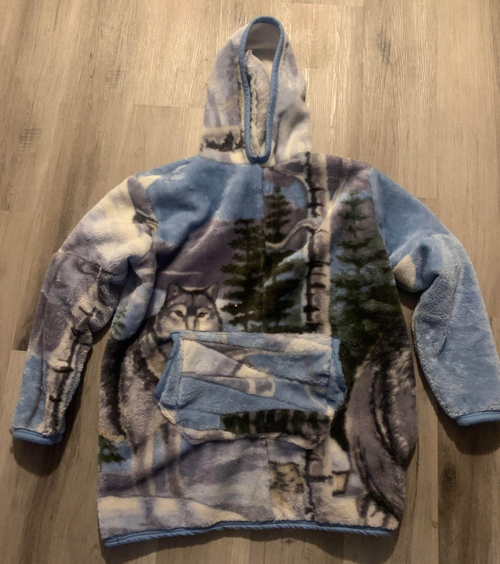 I made this sweater for my husband from a blanket I thrifted.