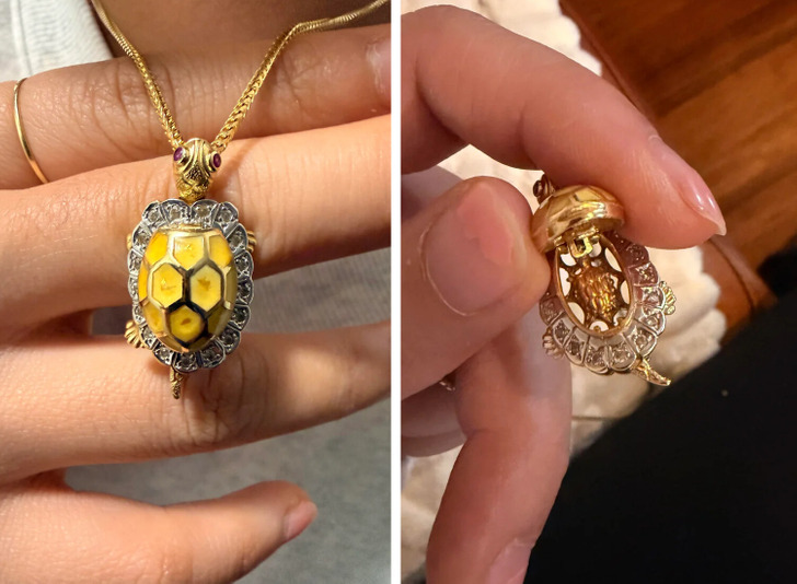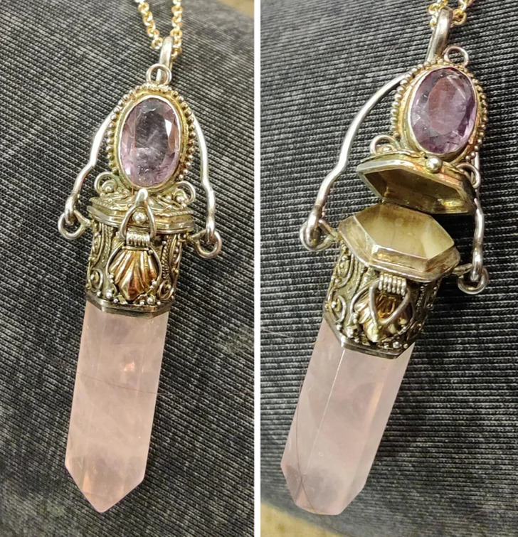My grandma’s pendant. One side has a space for a photo, and the other for perfume.