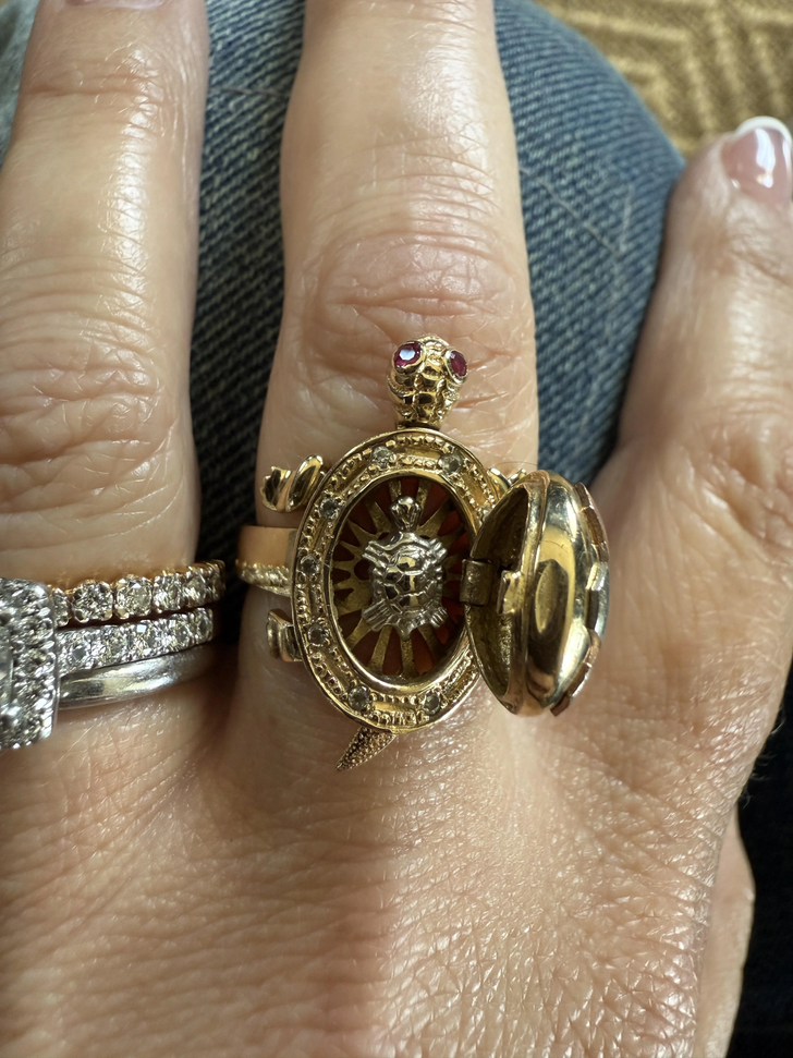 I made a couple of rings with a secret — both with little snakes on the inside.