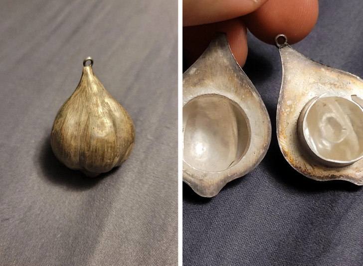 I bought this beauty on sale. This is not only a garlic bulb made of silver, but it also comes with a secret.