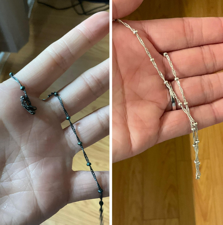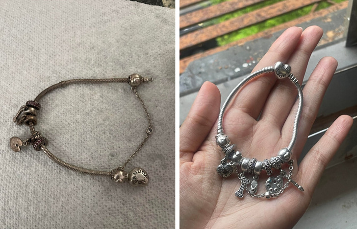 In the end, I found a special solution for cleaning silver jewelry. Now it’s like new!