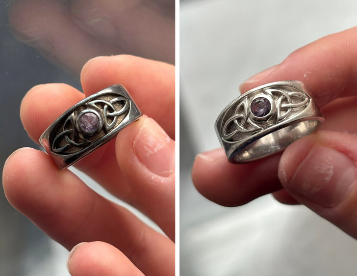 Bought this silver ring at a thrift shop. Photos before and after cleaning