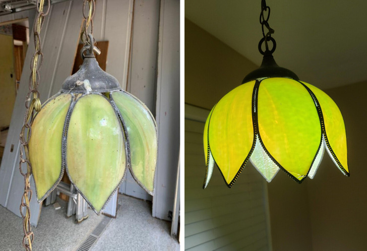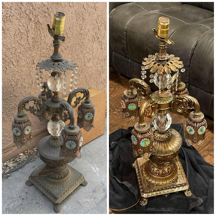 Bought it for next to nothing, the seller was glad to get rid of it. Cleaned it up — and it’s like 2 different lamps now.