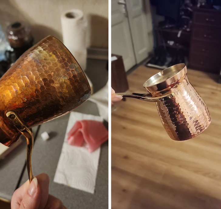 I was drinking coffee from this cezve all the way. Grandma arrived for the holidays and cleaned it up in 10 minutes. I’ve never seen my cezve looking like this!