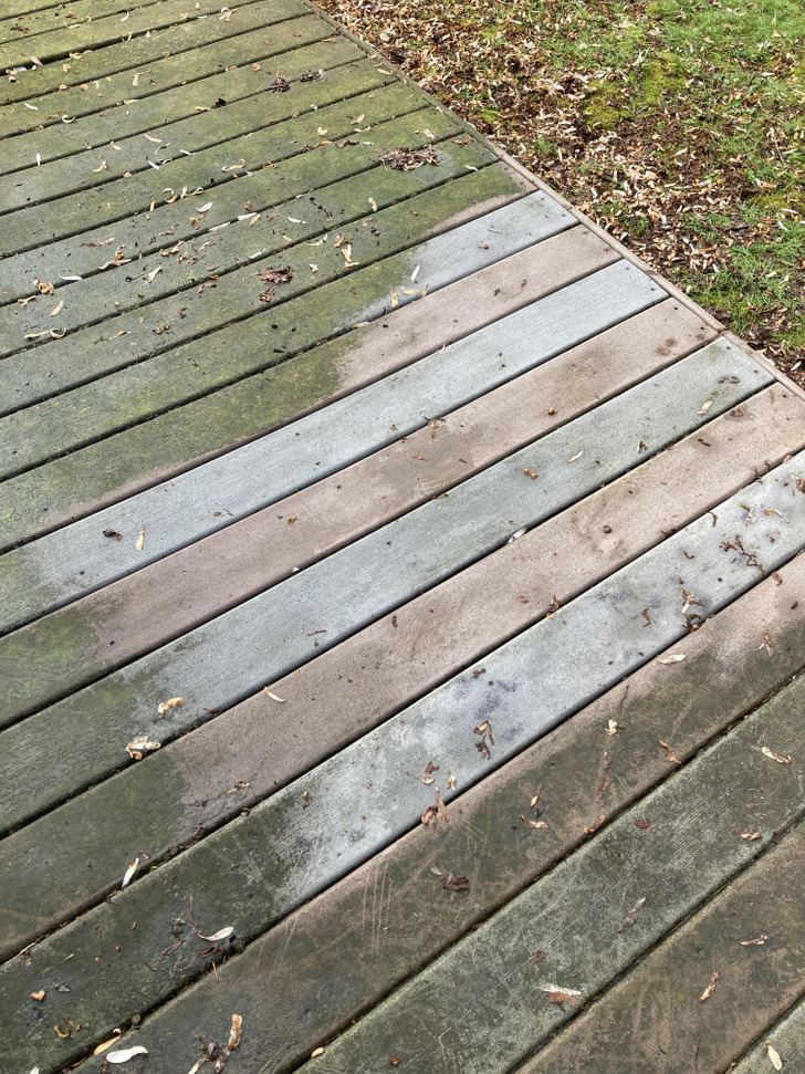 After scrubbing years worth of algae, it turns out Grandma’s deck was striped. Who knew?