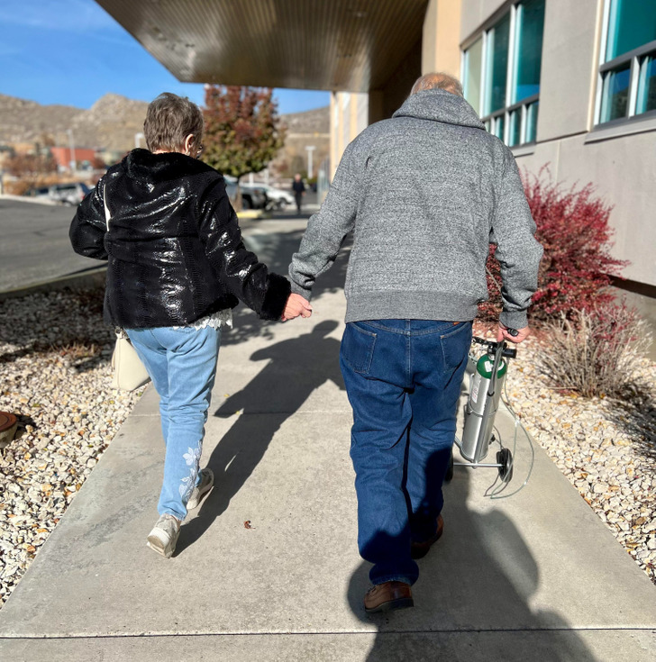 After over 50 years of marriage, and at 80 and 82 years old, my grandparents still hold hands everywhere they go.