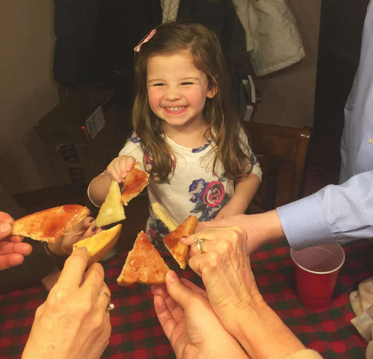 We told our 3-year-old that New Year’s is special because you get to toast to a new year. A few hours later she said, “Are we going to make a toast now?” And thus a New Year’s Day tradition was born.