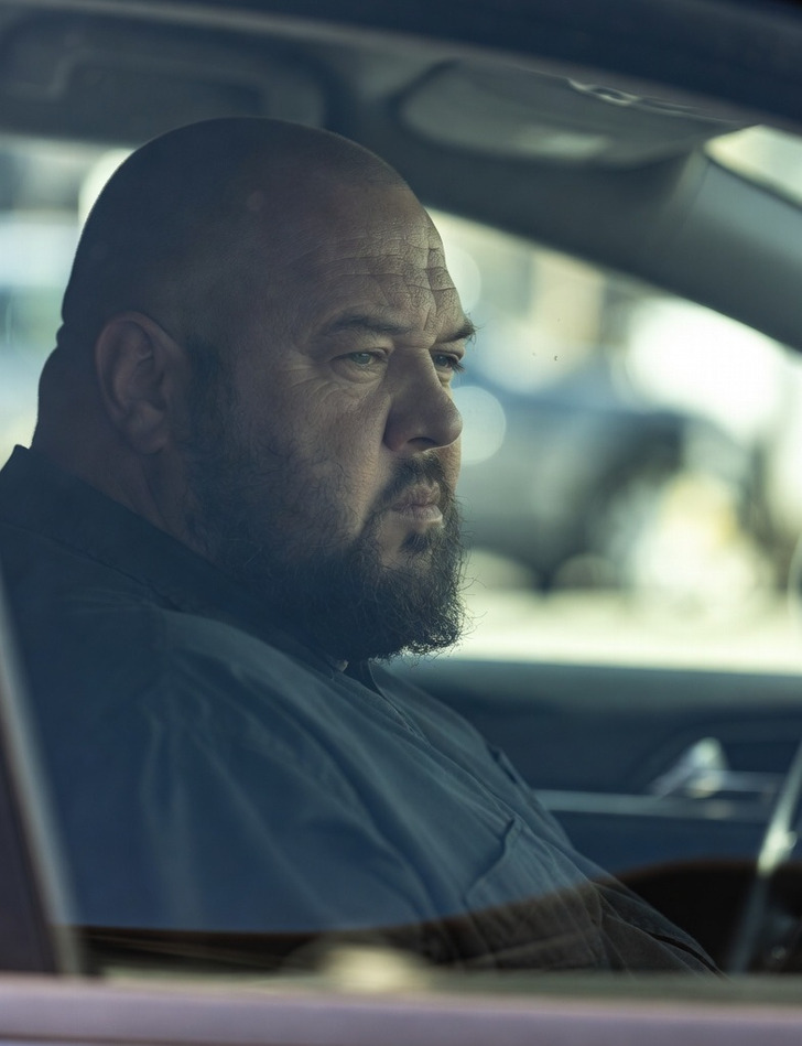 We escape and drive like crazy people all over LA. He finally trapped us, jumped out of his car, and dashed to the driver’s side window. Makes roll down the window motions.