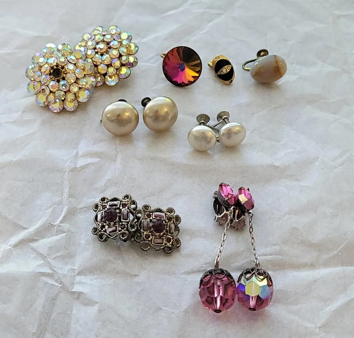 I inherited this collection of earrings from my grandmother. Some earrings are singles, but surely something can be figured out.