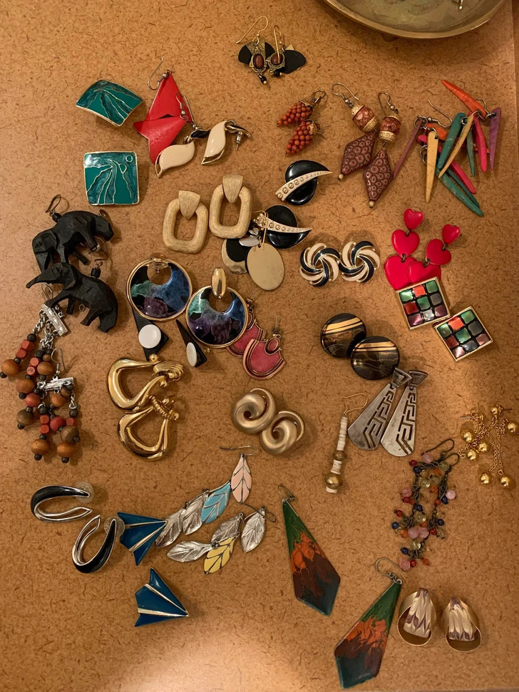 My grandma’s vintage earrings. She loved to travel and spent a ton of money on all sorts of fashionable things.
