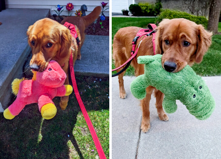 Hi, I’m Hank, and I refuse to go for a walk unless Mom lets me take my plush friend with me.
