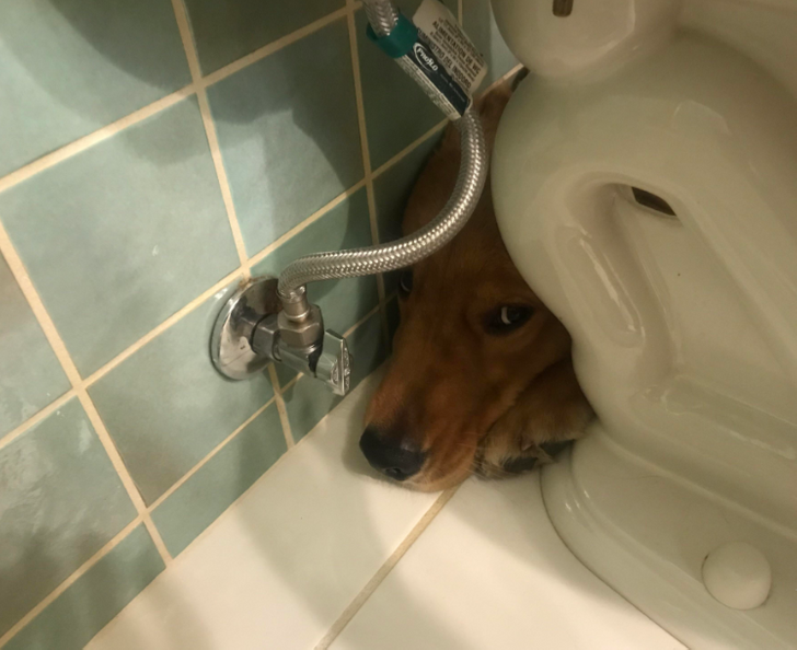 Every time he misbehaves, he punishes himself by hiding in this spot.