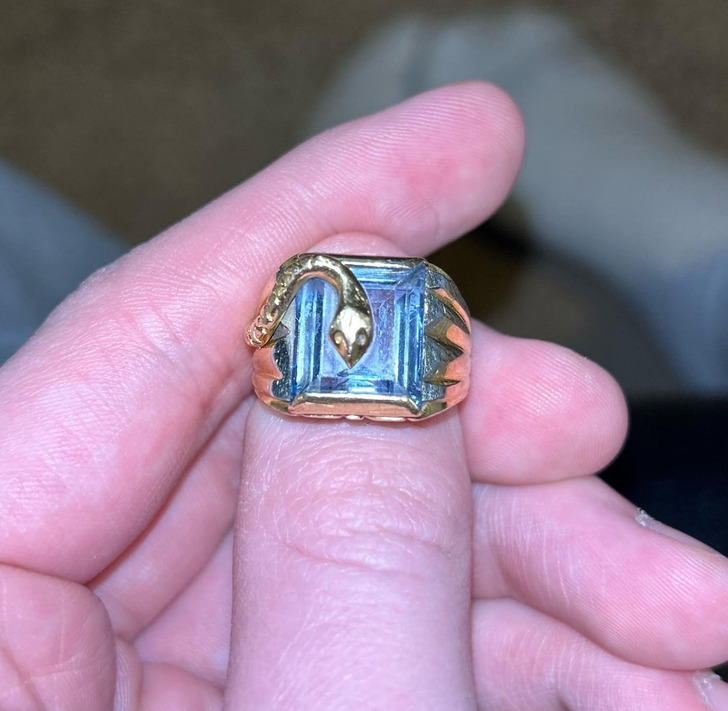 My boyfriend’s great-grandmother left him a whole bunch of things. Here’s, for example, one of the rings.