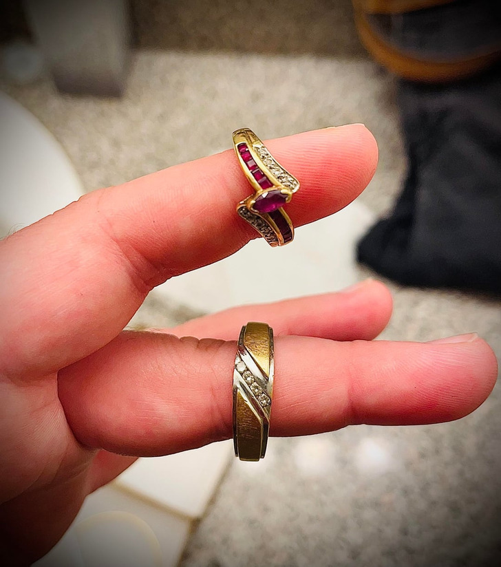 My parents are divorced. My mom gave me her wedding ring a long time ago. And now my dad gave me his.
