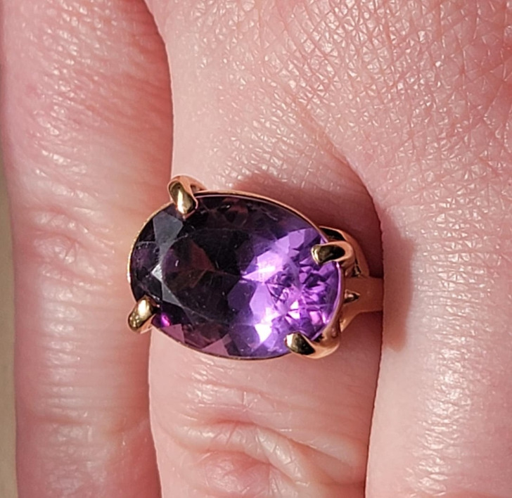 I inherited this ring with a huge amethyst from my grandmother. She was Brazilian and often traveled to her homeland for stones. I’ve been in love with it since childhood!